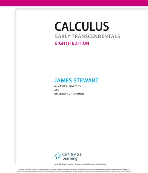Start your free trial now! Early transcendentals, eighth edition, stewart conveys not only the utility of calculus to help you develop technical competence, but also gives you an appreciation for the intrinsic beauty of book details. James stewart calculus , early transcendentals , 8th edition lesson section assignments 1 12.1. Submitted 1 year ago by johnnuguyen. Freeman and company new york.
